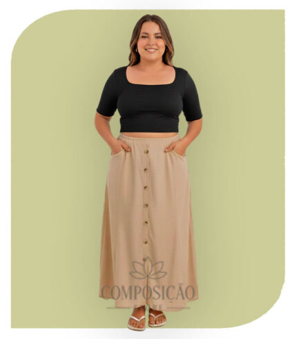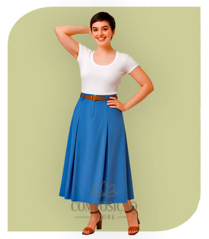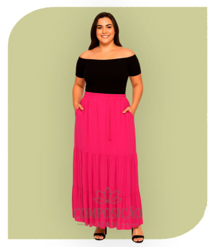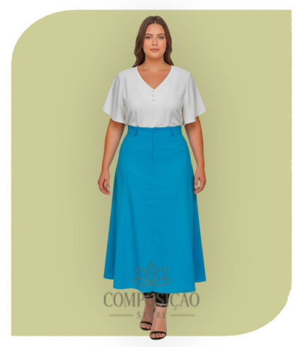 Saia Longa Jeans em Babados (Estilo Marias) – Lavagem Média