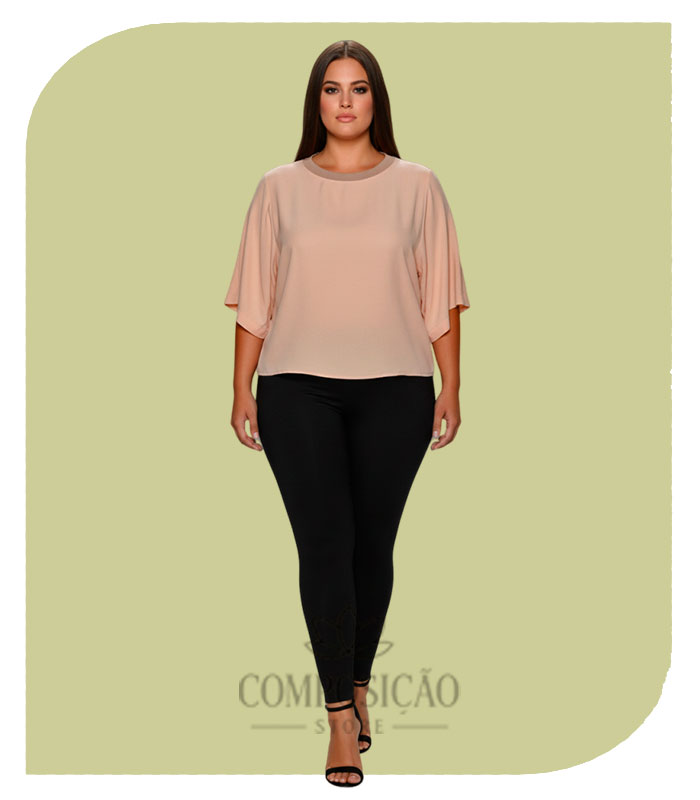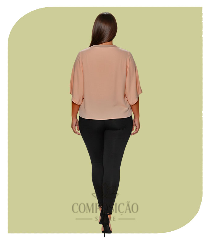 Mangas: Estilo Morcego (ou Quimono), soltas e amplas, que descem suavemente, criando um efeito visual charmoso e confortável.