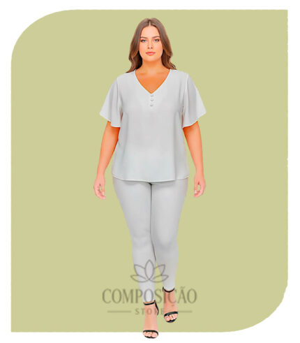 Blusa Nude Leve em Viscose com Botões – Linha Plus Size