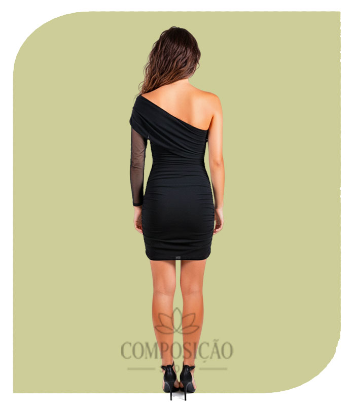 Vestido de Festa Curto Ombro Único – Preto e Glamuroso